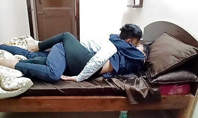 Indian dirty couple naughty kissing and fucking home alone