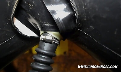 3 capas latex 3 capas mittens gasmask auto-contención bondage