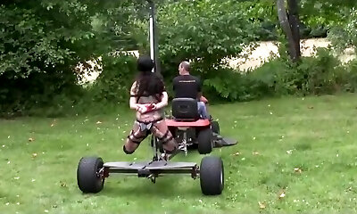 marioneta habladora gritando mientras su coño es deshuesado usando una máquina en bdsm