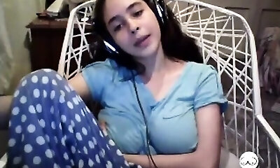 nice teenie peels off and thumbs gash on web cam