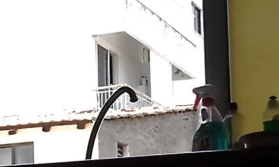 Young maid caught me milking off. Risky wanking off and Dickflashing.