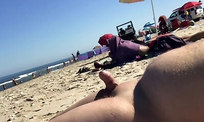 Fantastic shemale exhibitionist strokes big uncut cock on beach