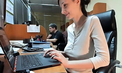 Attractive office slut Aston Wilde and her perky hard nipples