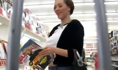 Shoe shopping with a adorable teen that flashes us