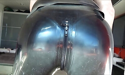 Spandex rubber doll in fuck-rubber dress.