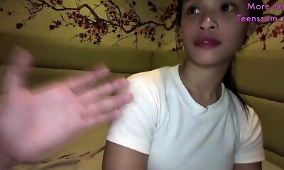 Brunette teenage ultra-cutie Veronica takes off her jeans and panties for money