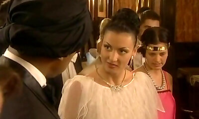 Two enticing brunette hoes fuck one crazy guy in threesome