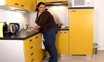 Giant French milf loves to be fucked in the kitchen by a younger cock