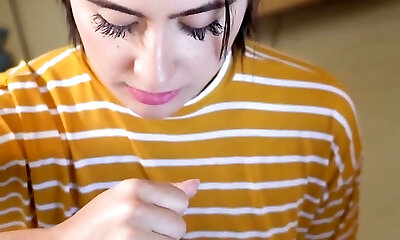Cute ash-blonde girl is amazed with the size of dude's manhood
