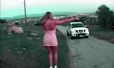 Monstrous breasted lady driver Natasha Nice picks up one stranger in the street